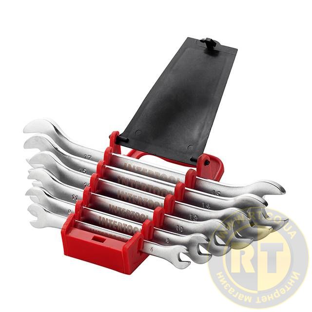 В набор рожковых ключей INTERTOOL HT-1001 вошли ключи, размерами: 6х7; 8х9; 10х11; 12х13; 14х15; 16х17 мм. Что позволяет подобрать необходимый размер под любые задачи для монтажа и демонтажа резьбовых соединений гаек и болтов.