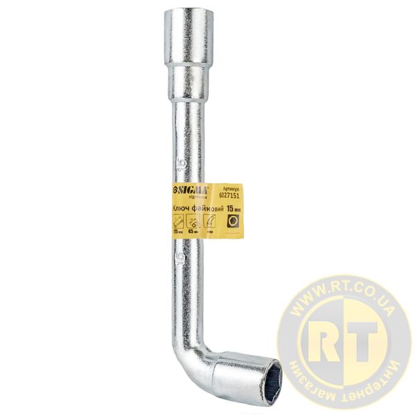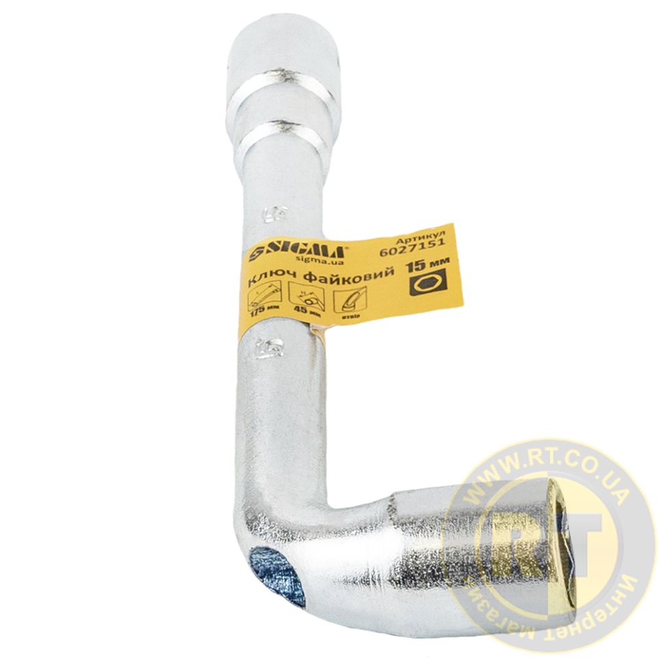 Ключ файковый 15мм SIGMA (6027151) L-образный с двумя торцевыми головками с шестигранным зевом.