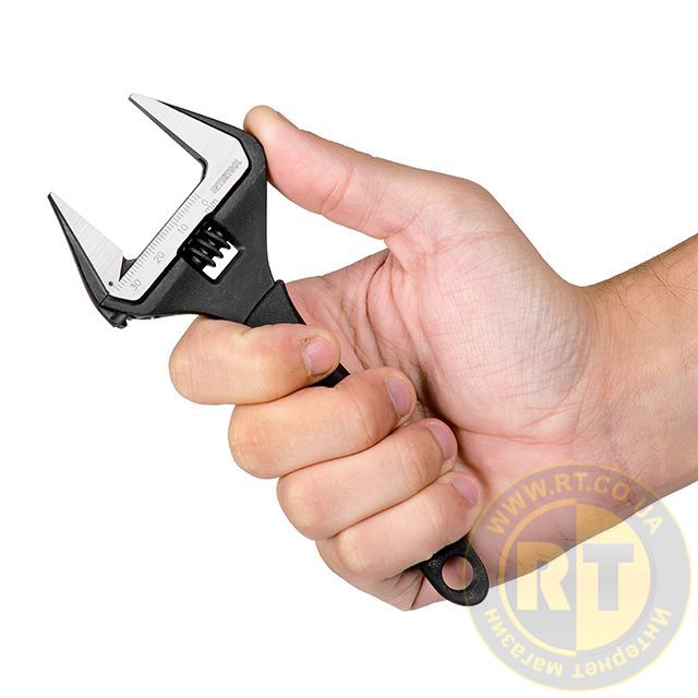 Благодаря уникальной геометрии ключа, ширина захвата увеличена на 55% по сравнению со стандартными разводными ключами. Также высота губок модели на 30% больше, что позволяет более эффективно захватывать любой крепеж.
