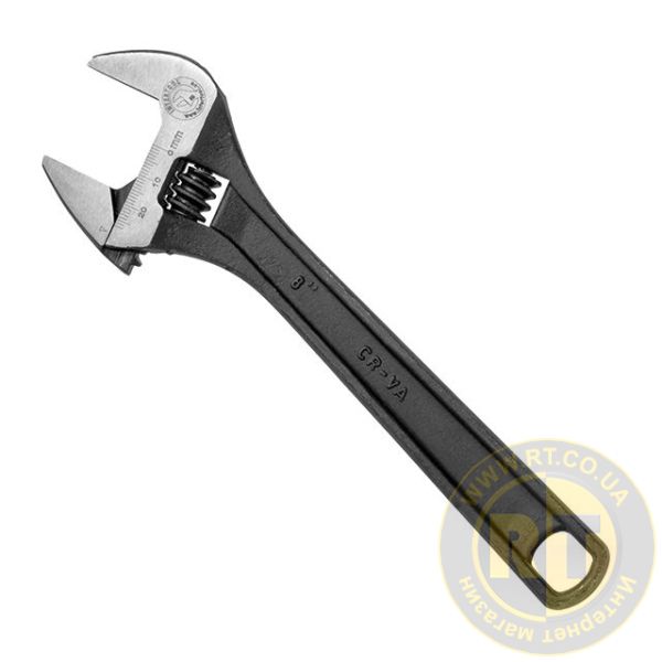 Ключ разводной, 200 мм, Cr-V, черный, фосфатированный INTERTOOL XT-0058