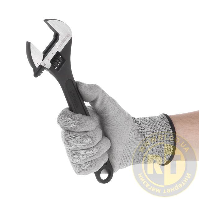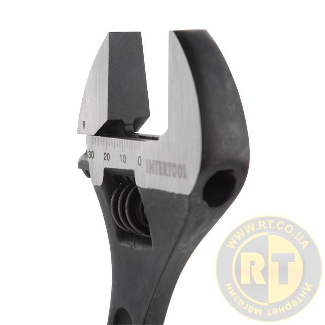 Разводной механизм червячного типа, точно откалибровать необходимый зазор (размер) для захвата крепежа позволяет нанесенная нестирающаяся миллиметровая шкала. Длинная ручка позволит удобно маневрировать разводным ключом и применять еще больше усилия.
