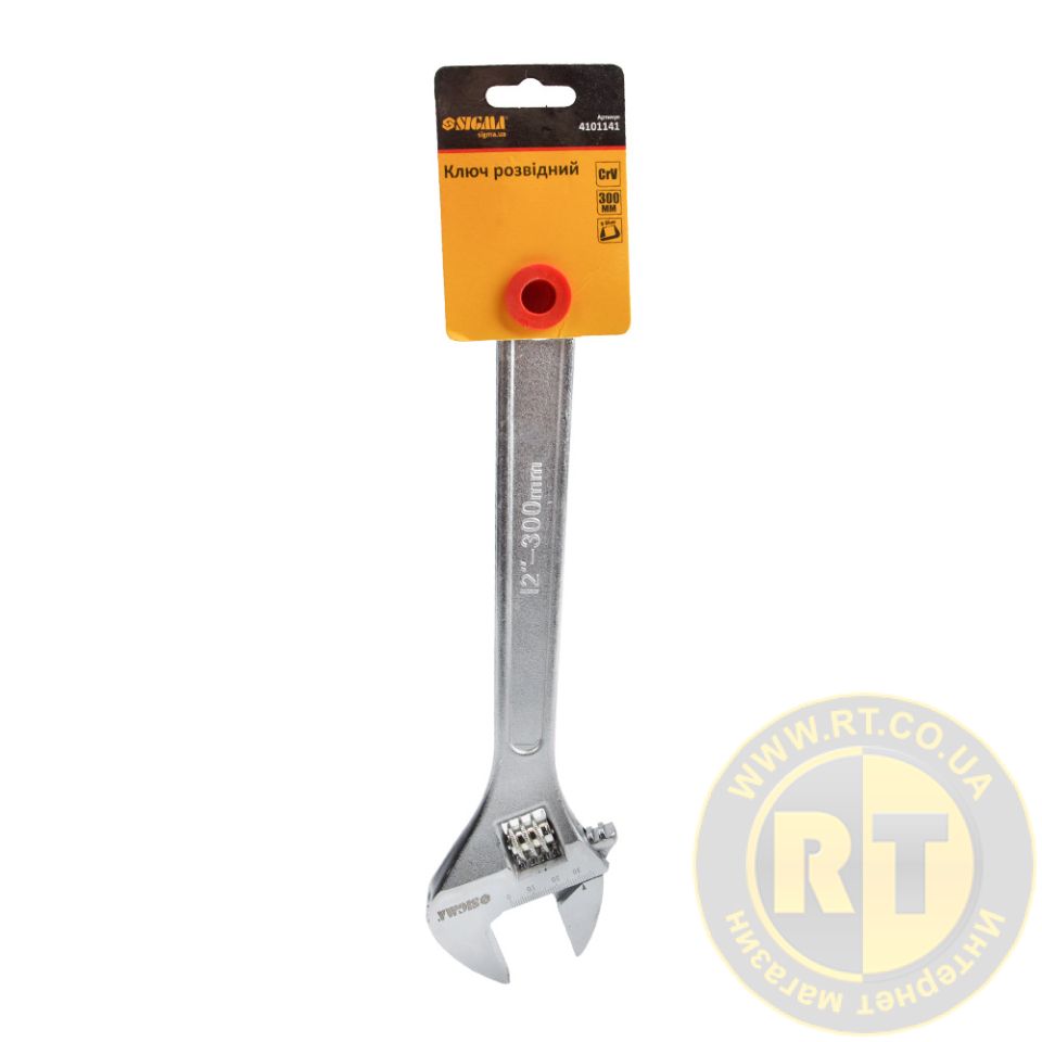 Ключ разводной 300мм CrV SIGMA (4101141) c хромированным покрытием из кованой хром-ванадиевой стали. Параллельная поверхность зажимных губок обеспечивает надежный захват гайки.