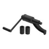 Перед началом работы необходимо установить рукоятку и выбрать торцевую головку соответствующего размера. Для более комфортной и эффективной работы с ключом предусмотрена специальная ножка, которая упирается в диск, обеспечивая стабильное положение. Ручка же имеем текстурированное покрытие из вспененного каучука для лучшей фиксации в руке.
