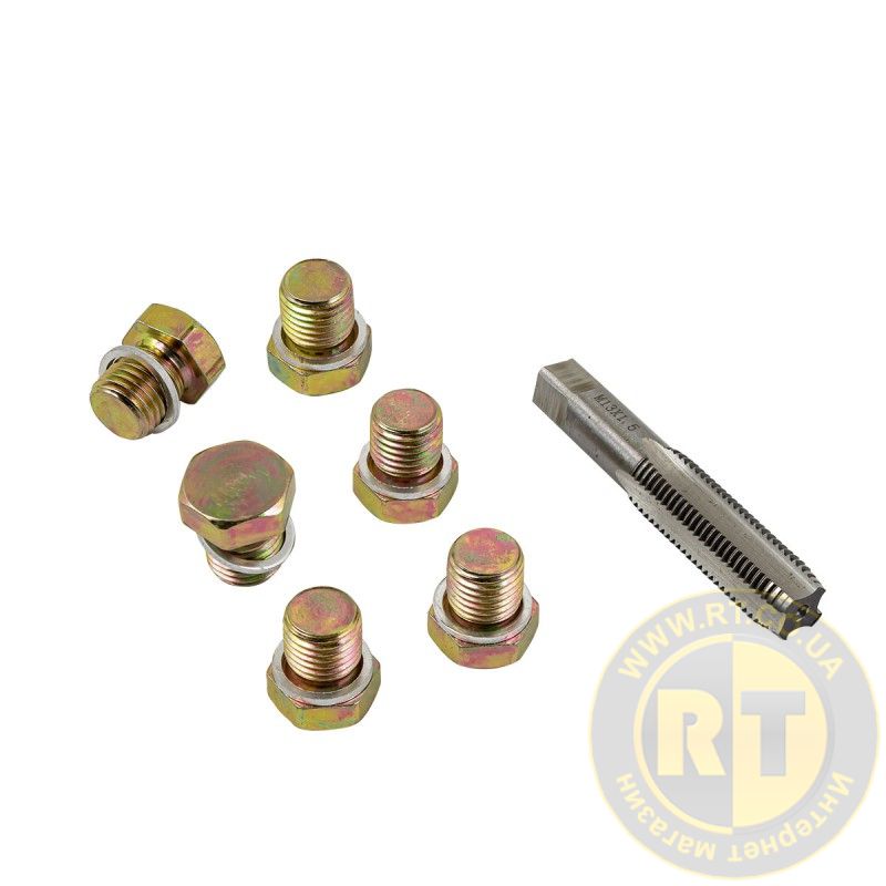 - В комплекте: 1 метчик M13 x 1,5, 6 сливных пробок с шайбами.