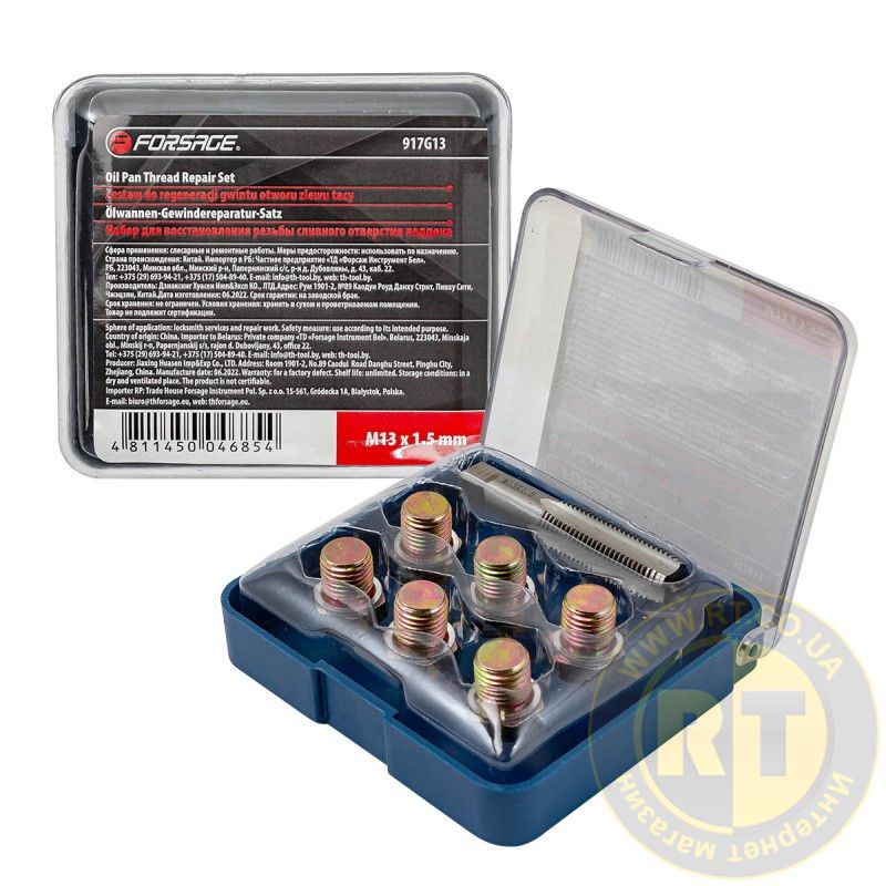 Набор для восстановления резьбы сливного отверстия поддона: M13х1,5мм (7 предметов) в футляре FORSAGE ROCKFORCE F-917G13