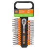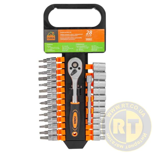 Набор головок и бит с трещоткой 28пр. 1/4"(4-13мм, Torx:T10,15,20,25,30, Hex:3-6мм,SL:4,5.5,7мм, PH1,2),в пластиковом держателе ISMA IS-2028-5
