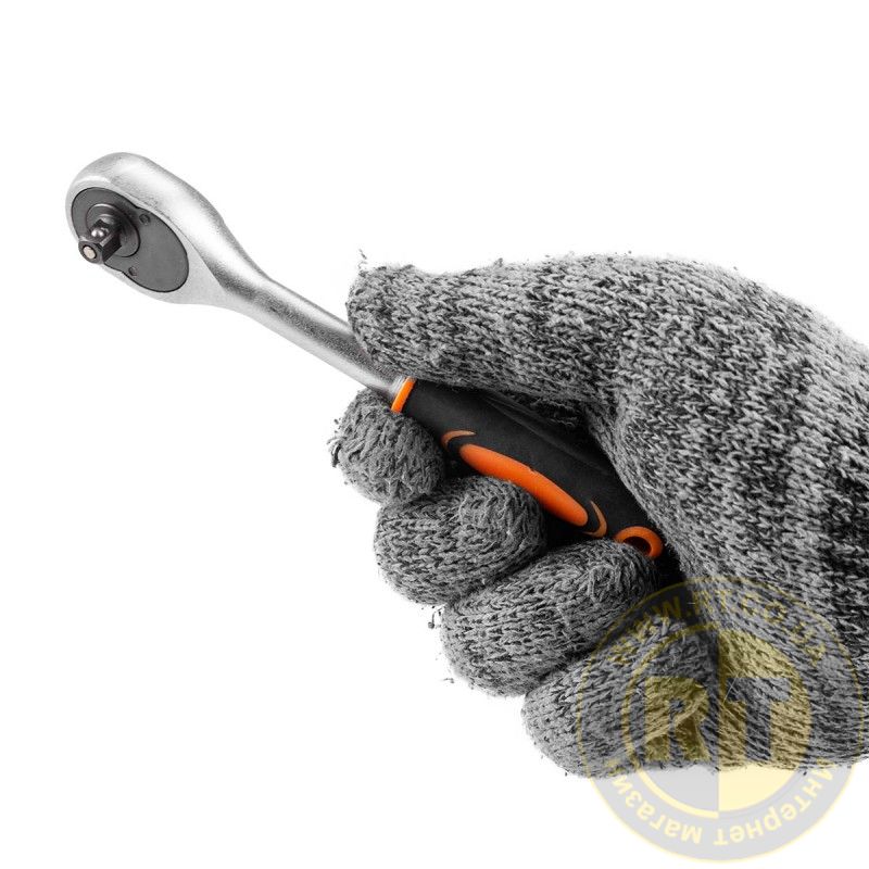 - Цельнокованная трещотка позволяет вращать крепеж максимально плавно и мягко, это делает удобной работу в труднодоступных и узких местах.