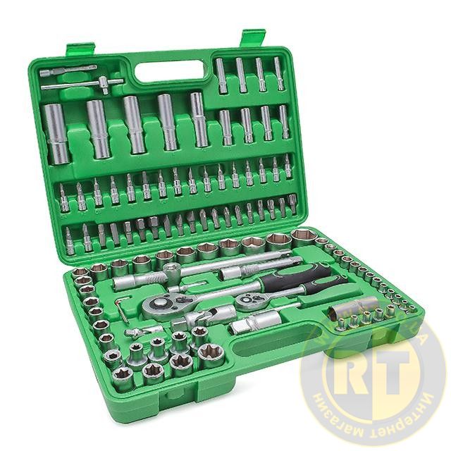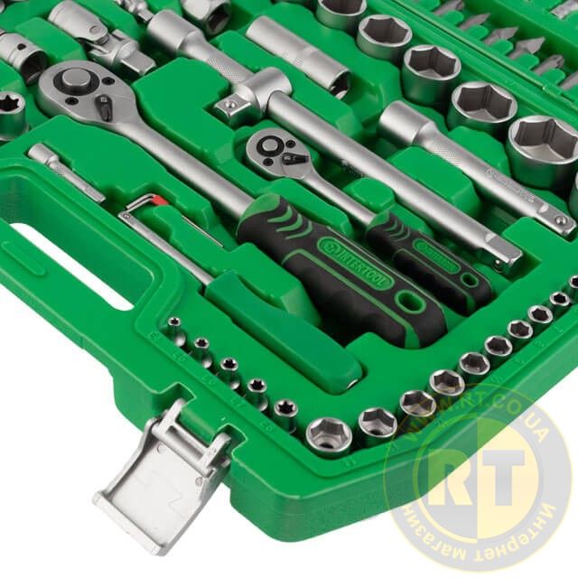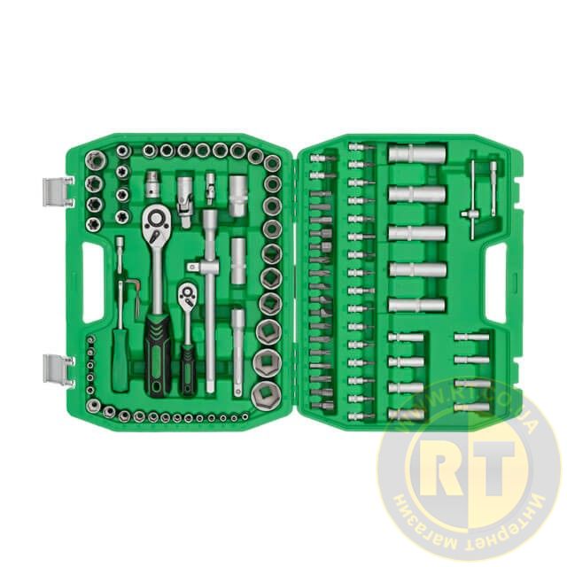 Набор включает 108 элементов для решения любой задачи на откручивание, закручивание крепежей. Для различных диаметров креплений есть целый арсенал шестигранных торцевых головок от 4 до 32 мм.