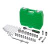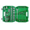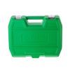 В наборе трещотка с посадочным квадратом 1/2", с реверсом, кнопкой для сброса и фиксации головок. Храповик на 72 зуба обеспечивает мягкость хода и позволяет работать в условиях ограниченного пространства. Прорезиненная двухкомпонентная ручка надежно сидит в руке и не выскальзывает.