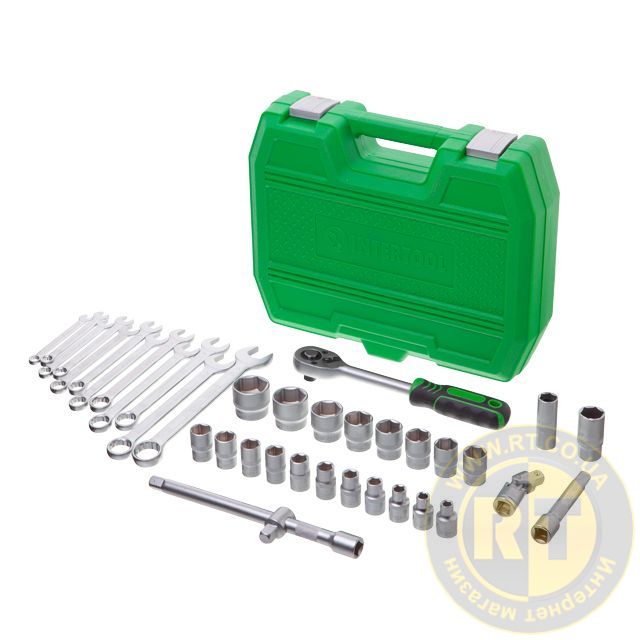 Набор инструментов, 1/2", 38 ед., головки: 8-32 мм, ключи: 8-22 мм, кейс INTERTOOL ET-6038SP