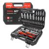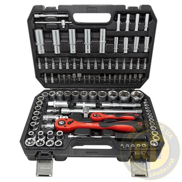Набор инструментов DISEN DI-10108, 1/4 и 1/2 дюйма, CrV, включает 108 предметов, в том числе ключи-трещотки, и предназначен для работы в гараже, а также домашнего ремонта. В комплекте инструменты для монтажа и демонтажа резьбовых соединений. Вороток, удлинители и карданные шарниры облегчают манипуляции в стесненных условиях. Для хранения и транспортировки предусмотрен кейс из ударопрочного пластика с надежными металлическими замками.