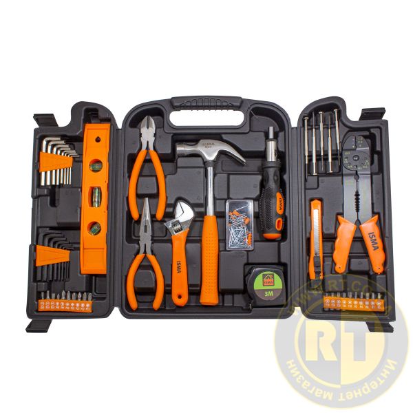 Набор инструментов 129пр.(шарнирно-губцевый,биты,отвертки,молоток, нож канцелярский), в кейсе ISMA IS-10129
