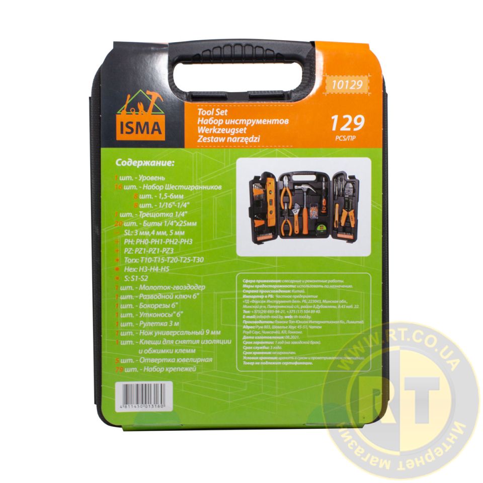 Набор инструментов 129пр.(шарнирно-губцевый,биты,отвертки,молоток, нож канцелярский), в кейсе ISMA IS-10129