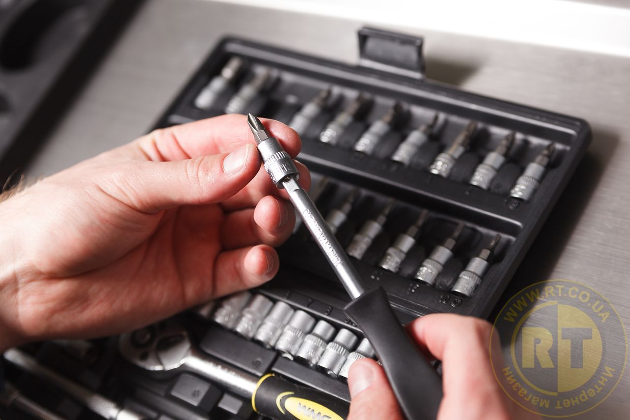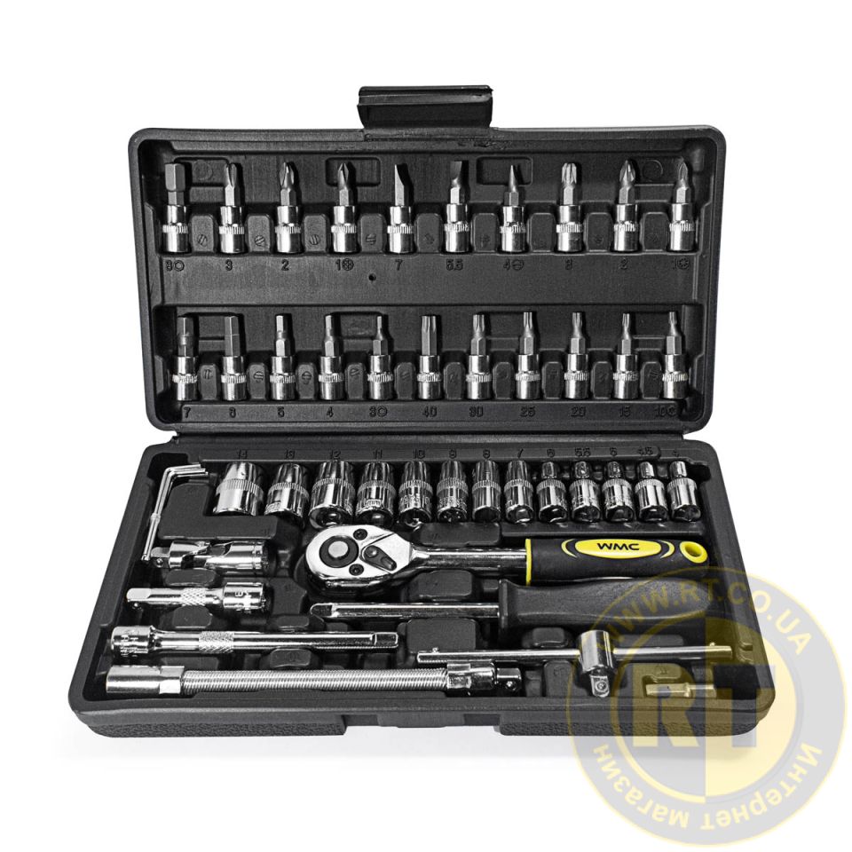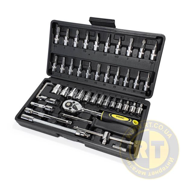 Набор инструментов WMC TOOLS 2462-5, 1/4 дюйма, в пластиковом кейсе, состоит из 46 предметов, изготовленных из стали CrV-группы и использующихся для работы с резьбовыми соединениями. В комплекте имеются кардан, удлинитель и вороток, упрощающие работу в труднодоступных местах. Набор будет полезен автолюбителям и домашним мастерам.