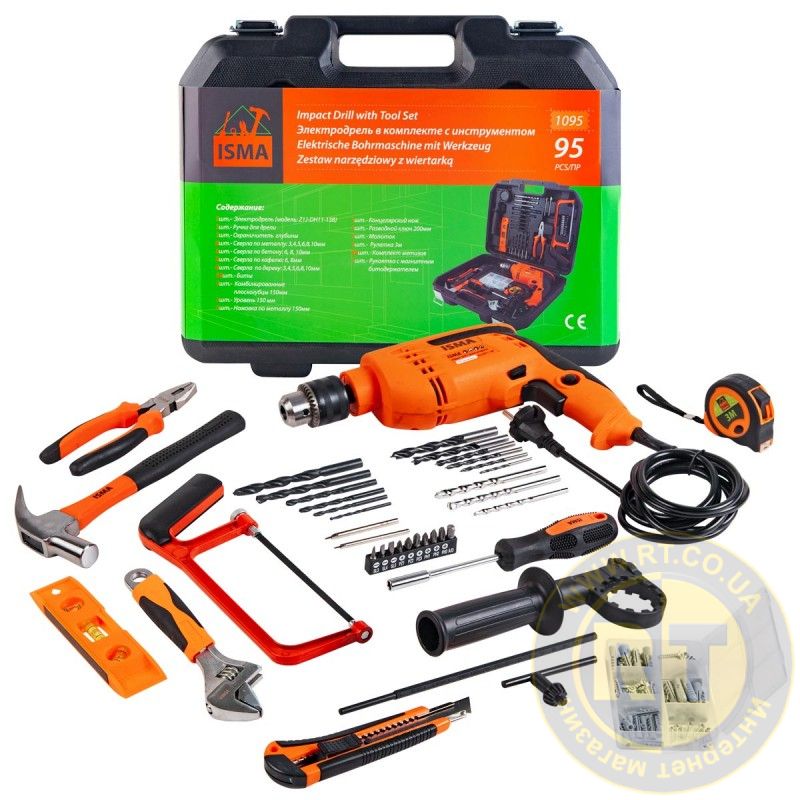 Набор инструментов с дрелью электрической,95пр.(220V,750W,0-2900об/мин),в кейсе ISMA IS-1095
