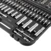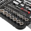 Все торцевые головки, трещотки, воротки, карданы и удлинители изготовлены из качественной Cr-V 50BV30 стали, благодаря чему получили увеличенный запас выносливости и время эксплуатации. Двойное никелированное покрытие защищает от появления коррозии и окисления. Особое внимание уделено битам этого набора, все они изготовлены из Cr-V 6150 стали, благодаря чему не деформируются и не ржавеют.