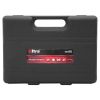 Надежный кейс из ударопрочного пластика позволяет систематизировать хранение инструмента и обеспечивает легкость в поиске нужного предмета. Кейс имеет усиленные петли, защитные накладки на углах и металлические замки, которые хорошо фиксируются и предотвращают самопроизвольное открытие кейса. Весь инструмент прочно фиксируется в посадочных местах, не высыпаясь при транспортировке.