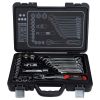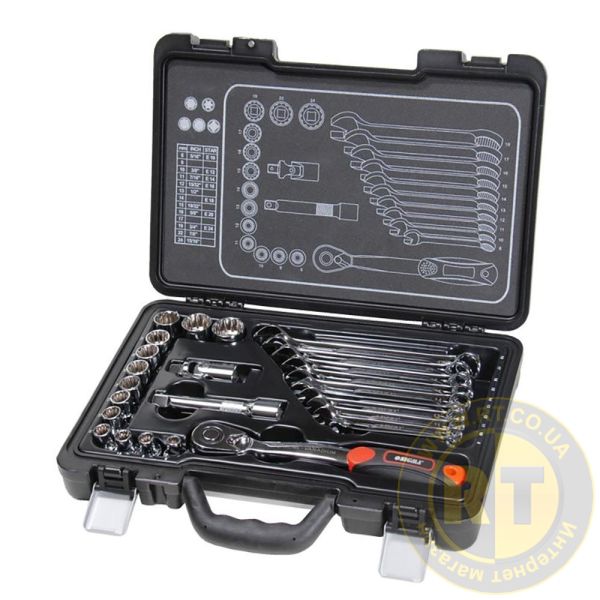Все элементы изготовлены из высококачественной хромованадиевой стали CrV 50BV30. Отличительной чертой данной марки стали является большое количество легирующих добавок, благодаря чему материал становится менее склонным к хрупкому разрушению и увеличивает надежность при эксплуатации. Трехслойное хромоникелевое покрытие увеличивает срок службы инструмента и предотвращает коррозию. Комплект содержит оптимальный набор приспособлений для выполнения различных видов работ в мастерской, на автосервисе, гараже или СТО, а также для различных бытовых нужд.