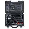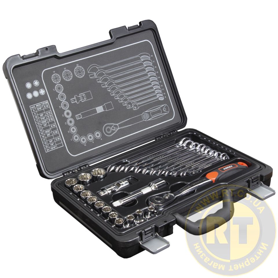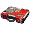 Надежный кейс из ударопрочного пластика позволяет систематизировать хранение инструмента и обеспечивает легкость в поиске нужного предмета. Кейс имеет усиленные петли, защитные накладки на углах и металлические замки, которые хорошо фиксируются и предотвращают самопроизвольное открытие кейса. Весь инструмент прочно фиксируется в посадочных местах, не высыпаясь при транспортировке.