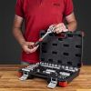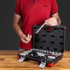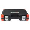 Надежный кейс из ударопрочного пластика позволяет систематизировать хранение инструмента и обеспечивает легкость в поиске нужного предмета. Кейс имеет усиленные петли, защитные накладки на углах и металлические замки, которые хорошо фиксируются и предотвращают самопроизвольное открытие кейса. Весь инструмент прочно фиксируется в посадочных местах, не высыпаясь при транспортировке.