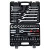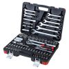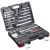 Все элементы изготовлены из высококачественной хромованадиевой стали CrV 50BV30. Отличительной чертой данной марки стали является большое количество легирующих добавок, благодаря чему материал становится менее склонным к хрупкому разрушению и увеличивает надежность при эксплуатации. Трехслойное хромоникелевое покрытие увеличивает срок службы инструмента и предотвращает коррозию. Комплект содержит оптимальный набор приспособлений для выполнения различных видов работ в мастерской, на автосервисе, гараже или СТО, а также для различных бытовых нужд.