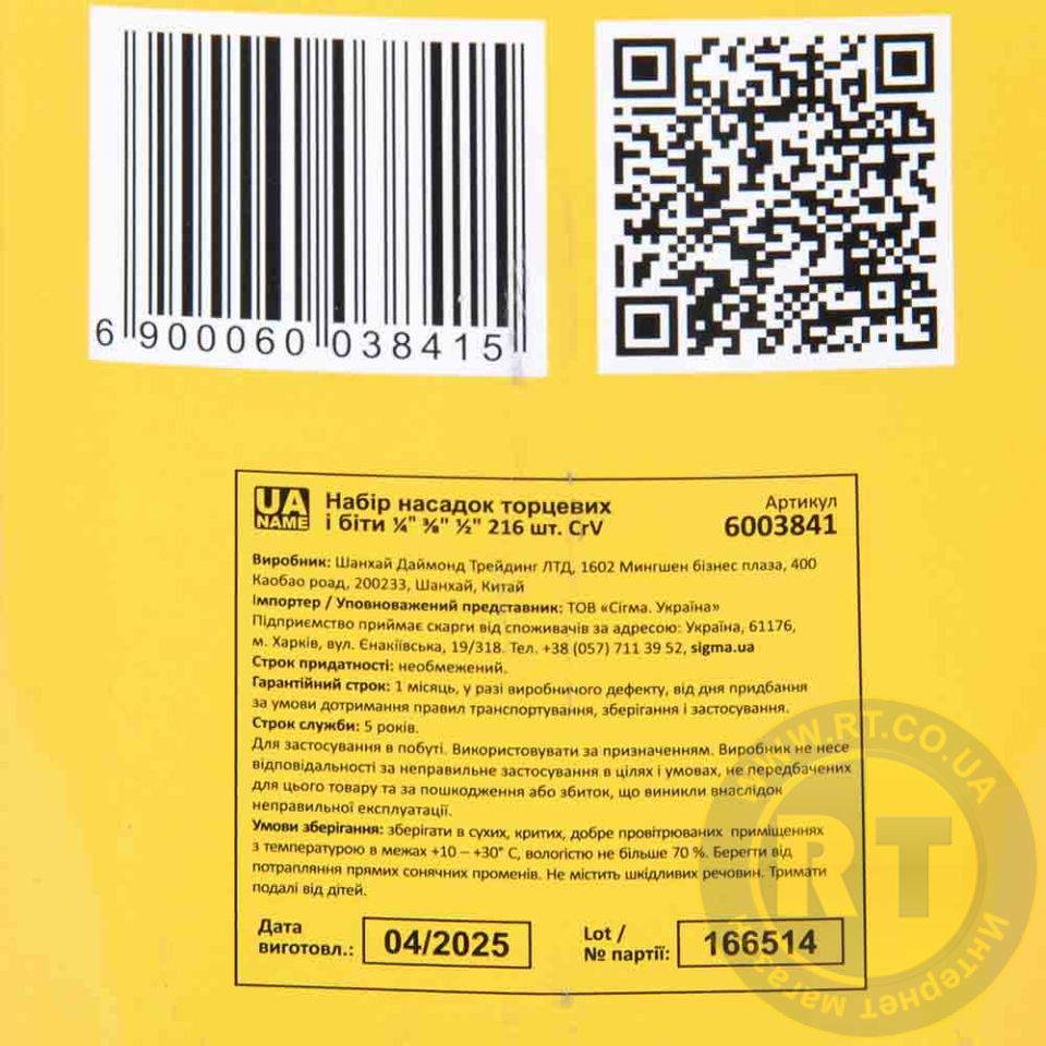 Набор насадок торцевых и биты 1/4", 3/8", 1/2" 216шт CrV SIGMA 6003841