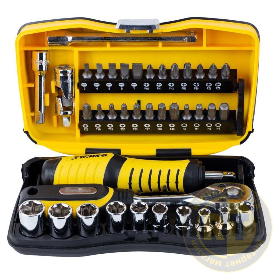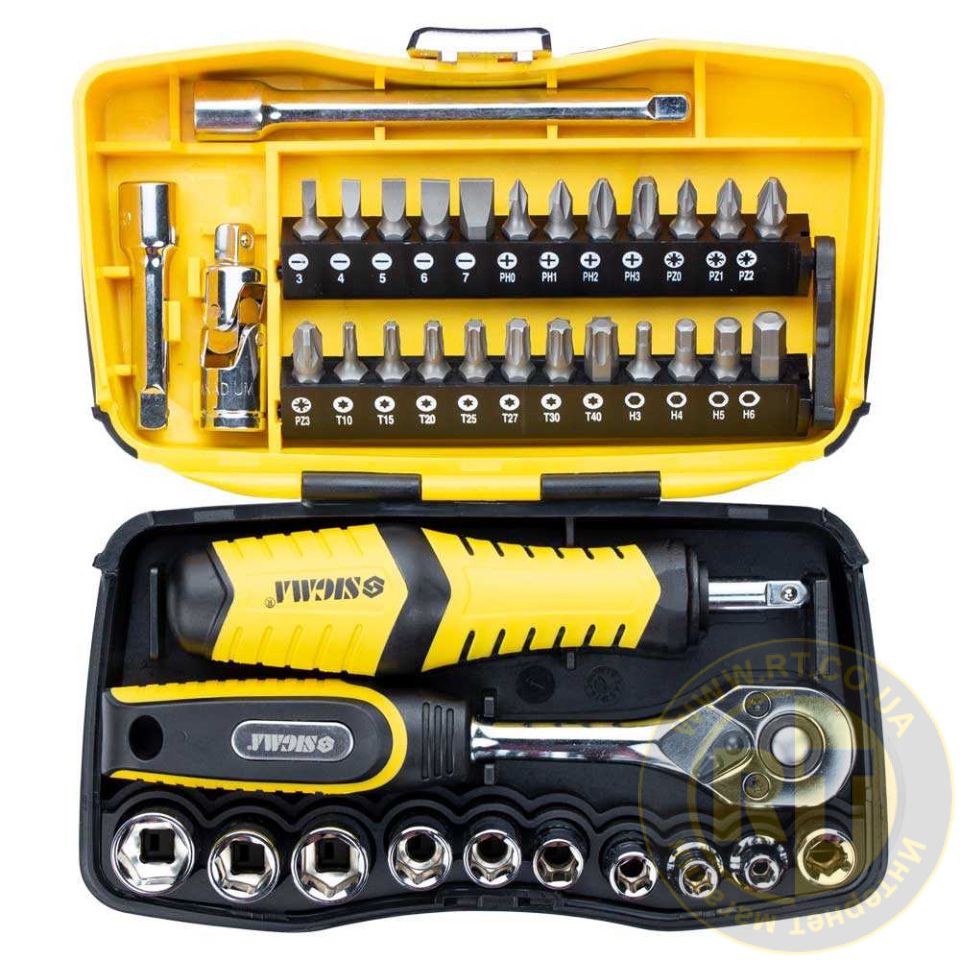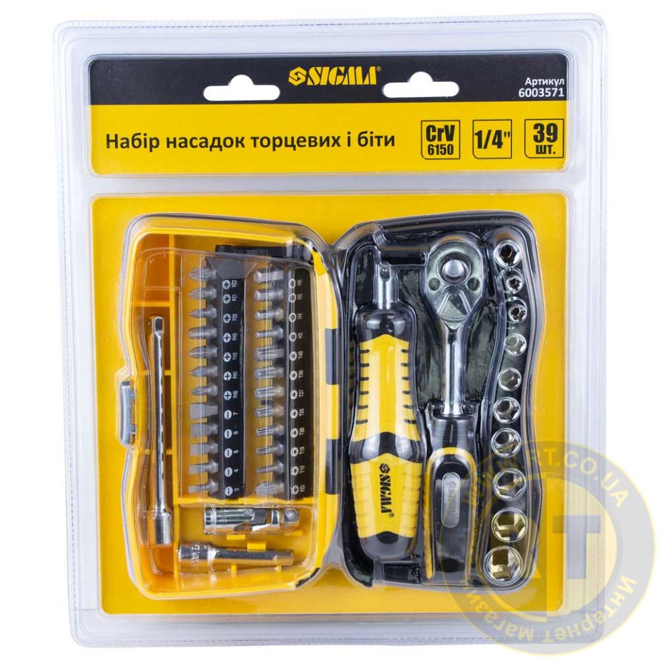 Набор насадок торцевых и биты 1/4" 39шт CrV SIGMA (6003571) - изготовлен из CrV и предназначен для монтажа и демонтажа резьбовых соединений.