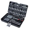 Все элементы изготовлены из высококачественной хромованадиевой стали CrV 50BV30. Отличительной чертой данной марки стали является большое количество легирующих добавок, благодаря чему материал становится менее склонным к хрупкому разрушению и увеличивает надежность при эксплуатации. Трехслойное хромоникелевое покрытие увеличивает срок службы инструмента и предотвращает коррозию. Комплект содержит оптимальный набор приспособлений для выполнения различных видов работ в мастерской, на автосервисе, гараже или СТО, а также для различных бытовых нужд.
