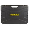 Для удобного хранения и транспортировки, набор поставляется в кейсе выполненный из ударопрочного ABC-пластика. Кейс обладает усиленными петлями и металлическими замками, которые хорошо фиксируются и предотвращают непроизвольное открытие кейса. Весь инструмент крепко фиксируется в посадочных местах, не высыпаясь при транспортировке. Небольшие габаритные размеры набора позволяют компактно разместить его в багажном отделении вашего автомобиля или в гараже.