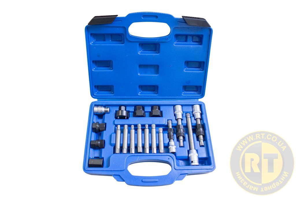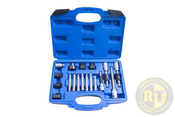Набор для снятия шкивов генераторов 18пр(1/2":М10х140,М10х110,Т50х110мм,3/8":М10х90мм,10мм:М10х65мм,М8,М10,Т50,Т40,Н8,Н10х75мм,1/2"(F)х10мм(F)в кейсе ROCKFORCE F-922G3