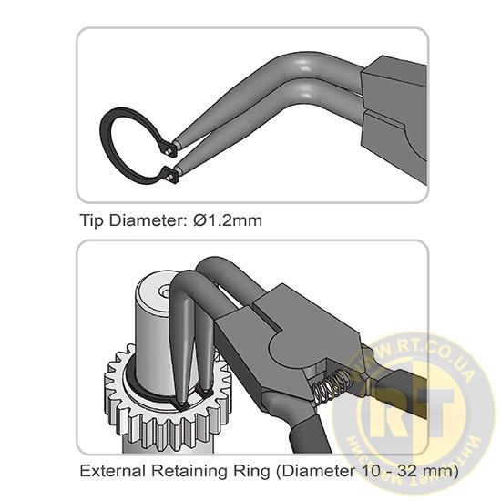 - Тип: круглогубцы для стопорных колец (разжимные, внешние)