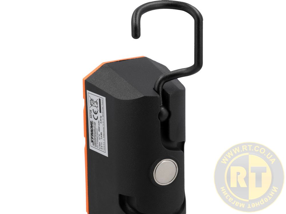 Рабочий диапазон 20 м обеспечивает хорошее освещение рабочей зоны. В качестве дополнительного бонуса магниты в корпусе и крючке позволяют легко повесить лампу.