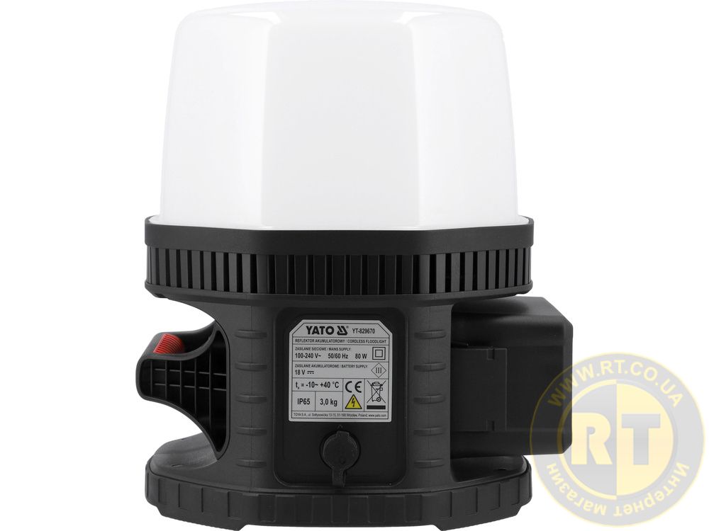 Лампа SMD-диода, портативная батарея 18 В, зона- 360 °, 3 режима- 2500/5000/10000 LM Yato YT-829670