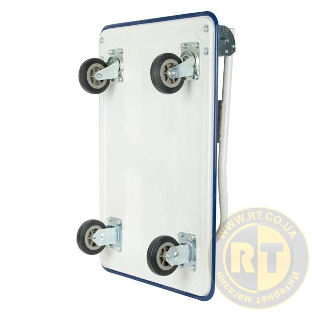 Тележка изготовлена из крепкой стали, служит надежно и долговечно. Широкая платформа с габаритами 910х610 мм позволяет удобно разместить габаритный груз. Она не деформируется и выдерживает нагрузки благодаря ребрам жесткости и крепкому основанию из толстой стали.