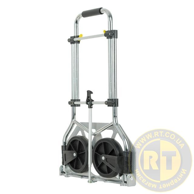 Основными преимуществами этой ручной тележки являются её легкий вес (5 кг) и быстрый переход в рабочее состояние. В сложенном виде она очень компактная (680х420х50 мм), легко помещается в багажник автомобиля. Подготовка к работе осуществляется в два действия: