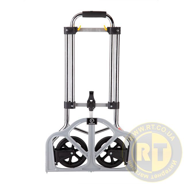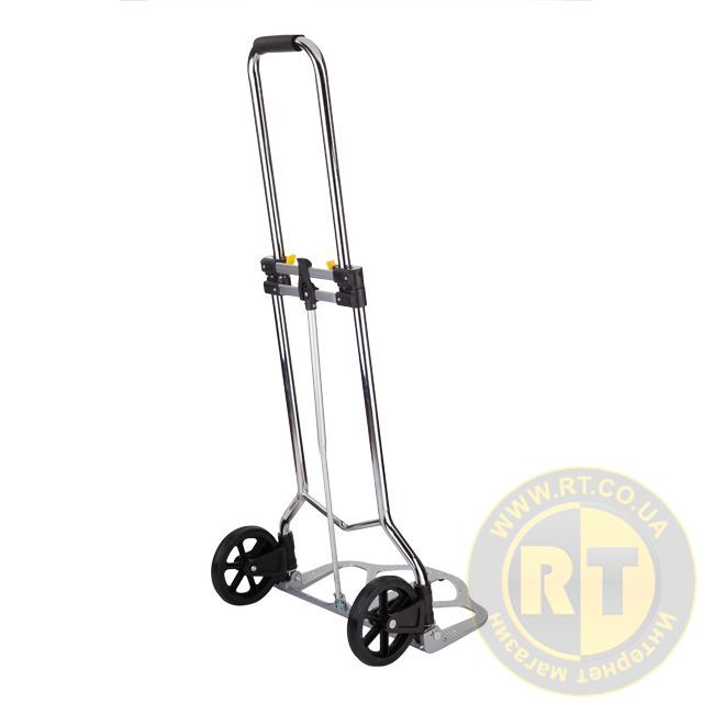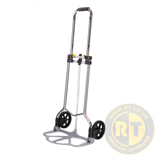 Тележка изготовлена из стали, служит надежно и долговечно. Выдвижная ручка, удобная по высоте (960 мм), фиксируется замком, как в сложенном, так и в разложенном виде. Откидная алюминиевая платформа с габаритами 390х230 мм позволяет быстро подхватывать груз. Надежная, не гнется и не деформируется, благодаря ребрам жесткости, рифленой поверхности и загнутому опорному краю.