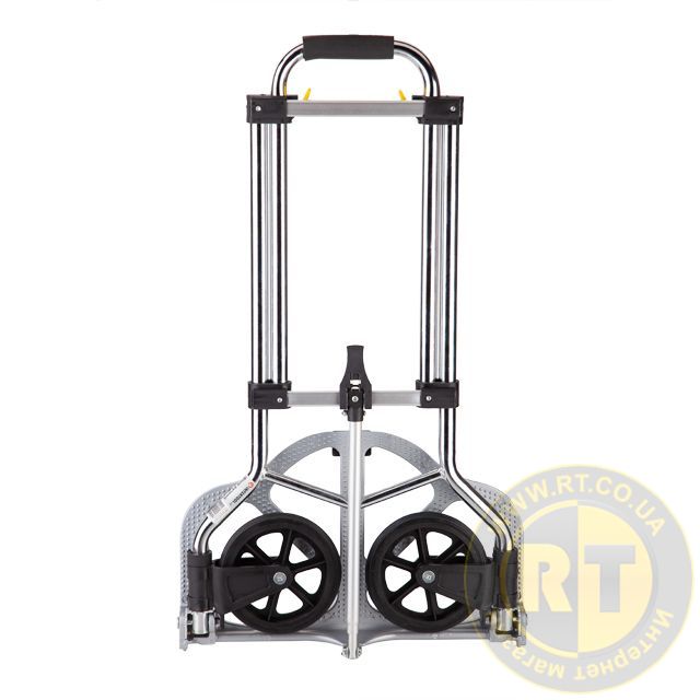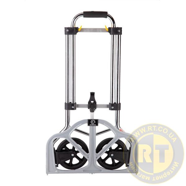 Основными преимуществами этой ручной тележки являются её легкий вес (3.3 кг) и быстрый переход в рабочее состояние. В сложенном виде она очень компактная (680х390х45 мм), легко помещается в багажник автомобиля. Подготовка к работе осуществляется в два действия: