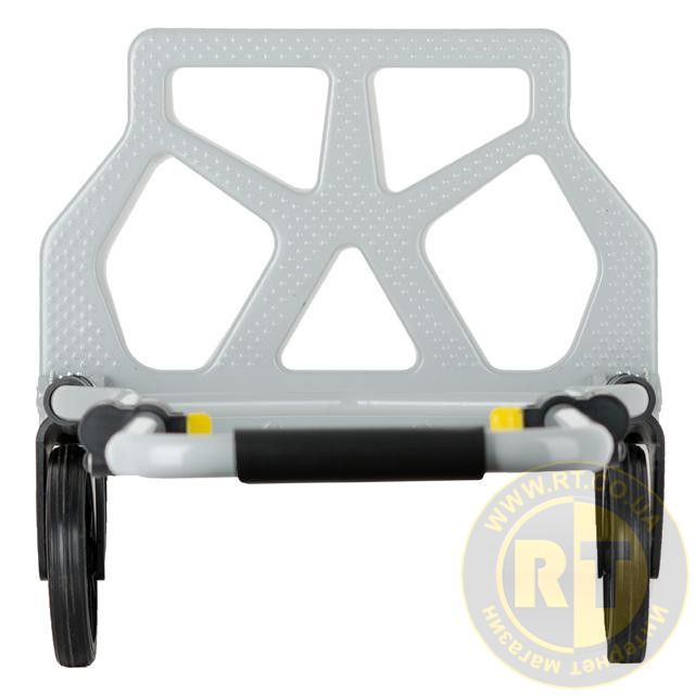 Основными преимуществами этой ручной тележки являются её легкий вес (3,8 кг) и быстрый переход в рабочее состояние. В сложенном виде она очень компактная (680х420х50 мм), легко помещается в багажник автомобиля. Подготовка к работе осуществляется в два действия:
