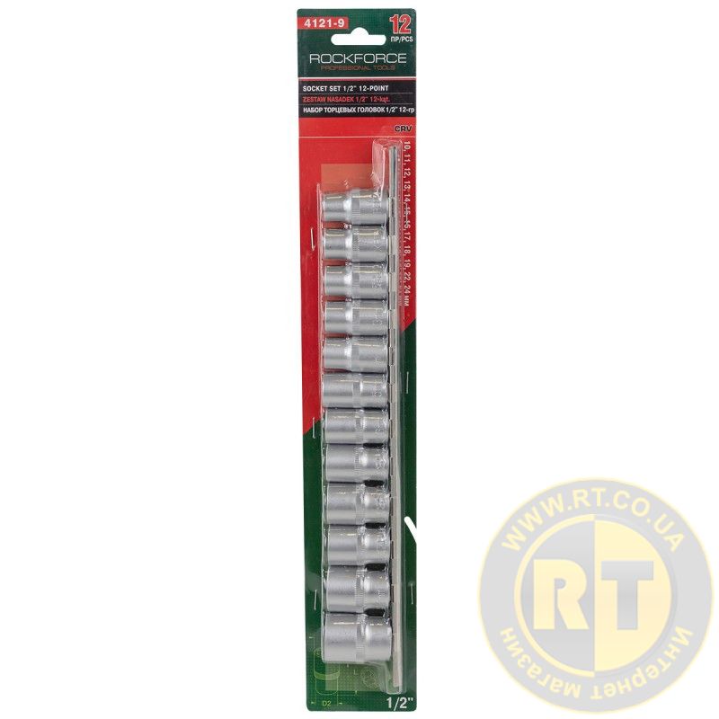 Набор головок 12 предметов 1/2" 12гр.(10-19,22,24мм), на планке ROCKFORCE RF-4121-9