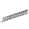 - Набор включает головки с посадочным квадратом 1/2'' и шестигранным профилем следующих размеров: 10; 11; 12; 13; 14; 15; 16; 17; 18; 19; 22; 24 мм