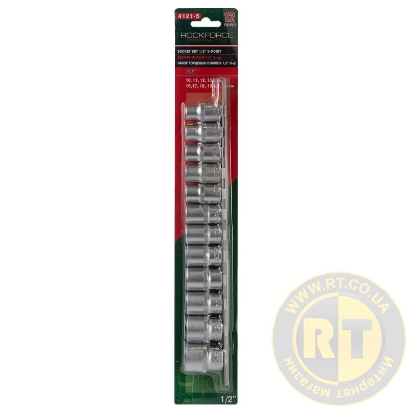 Набор головок 12 предметов 1/2" 6гр.(10-19,22,24мм), на планке ROCKFORCE RF-4121-5