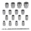 Набор из 16 торцевых головок размером 10-32 мм ROCKFORCE RF-4161-9 с присоединительным квадратом 1/2" и 12-гранным профилем, изготовленных из хромованадиевой стали (CrV), предназначен для работы с резьбовыми соединениями. Насадки будут полезны автовладельцу, работнику автосервиса и домашнему мастеру.