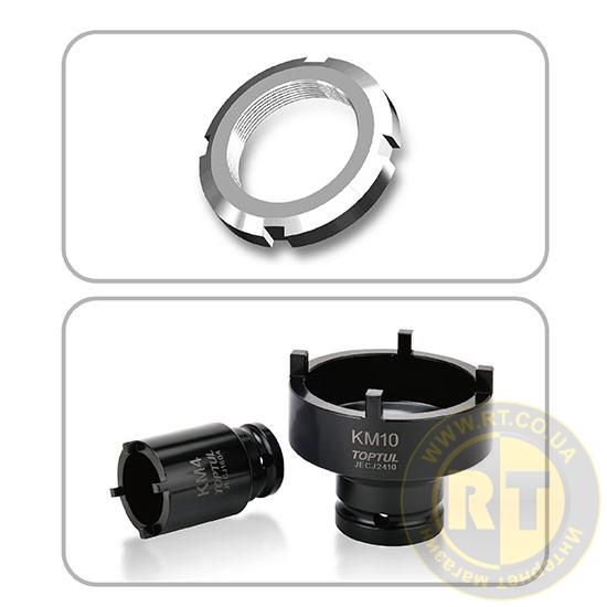 Набор головок для стопорных гаек с наружными зубцами (KM4-KM12) 9 ед. TOPTUL JGAI0901 – профессиональный комплект для работы со стопорными гайками, обеспечивающий точность и безопасность при демонтаже и монтаже. Благодаря тонкому профилю головки занимают минимум места на гайке, что позволяет использовать их даже в узких пространствах.