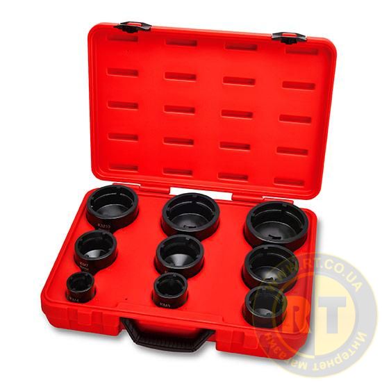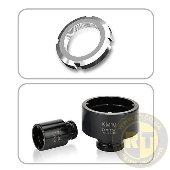 Набор головок для стопорных гаек с наружными зубцами (KM4-KM12) 9 ед. TOPTUL JGAI0902 – профессиональный комплект для безопасного и эффективного демонтажа и монтажа стопорных гаек. Благодаря специальной конструкции головки плотно сцепляются с внутренней структурой гайки, обеспечивая высокий крутящий момент без повреждения деталей.