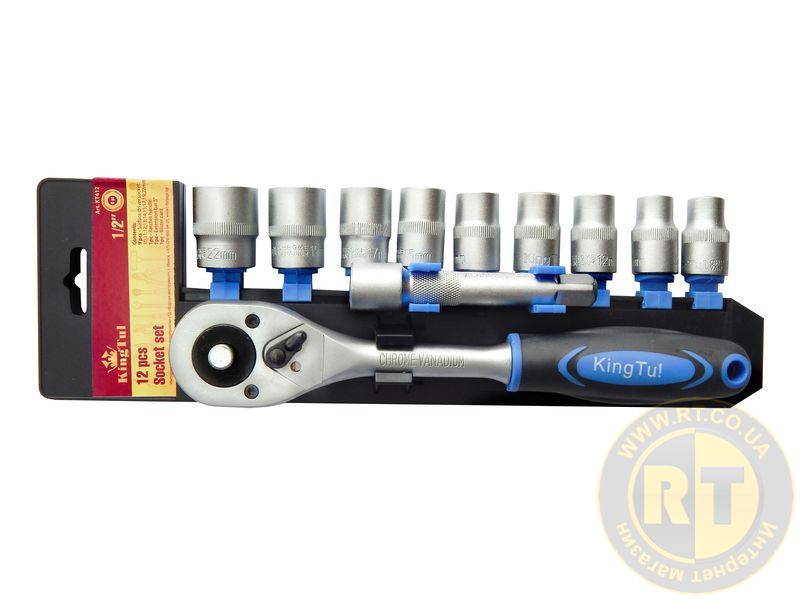 Код товара: 2747, Состав: Набор головок с трещоткой и удлинителем в пласт. держателе 12пр. 1/2" (10-22мм, 6-гран.) KINGTUL KT412