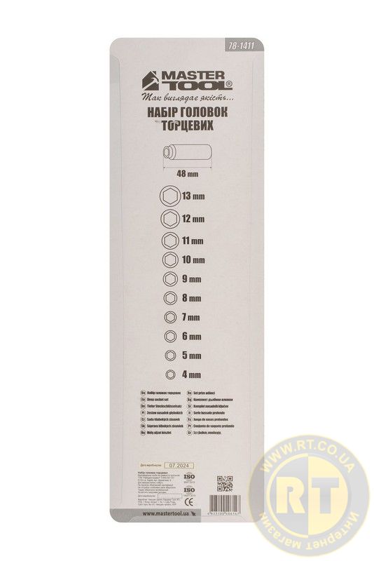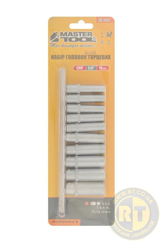 Набор головок торцевых 6-гранных удлиненных ¼" 4-13 мм L 48 мм CrV 10 шт MASTERTOOL 78-1411