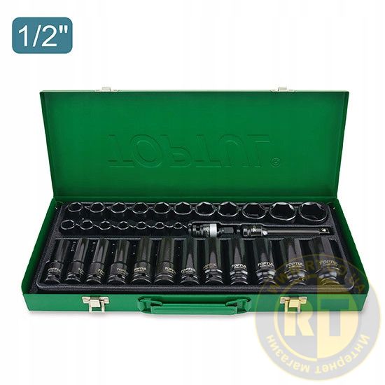 Набор головок ударных 1/2" 8-32 мм 32 ед. короткие+длинные TOPTUL GDAD3201