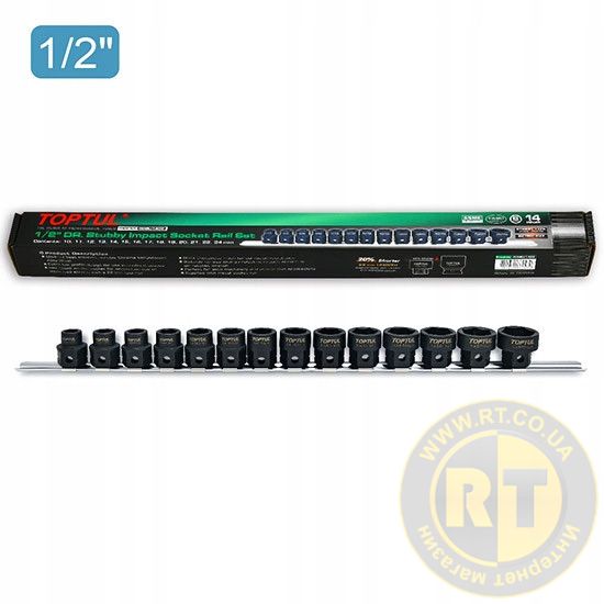 Набор головок ударных низкопрофильных с 6-гр. хвостовиком 1/2" 10-24мм 14ед. TOPTUL GDBU1402