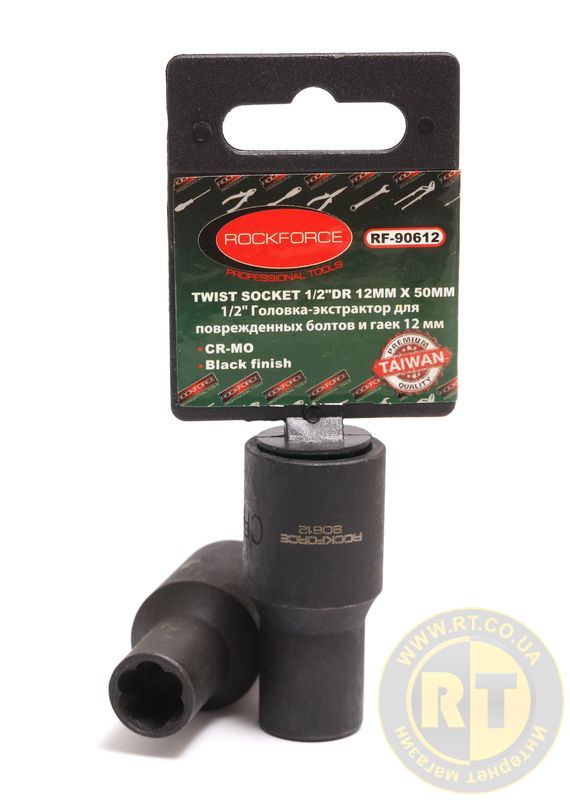 Головка-экстрактор для поврежденных болтов/гаек 10ммх50мм, 1/2",на пластиковом держателе ROCKFORCE PARTNER RF-90610