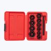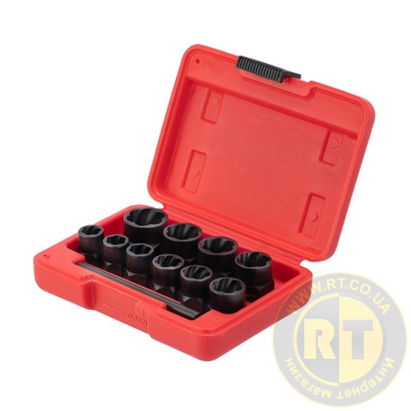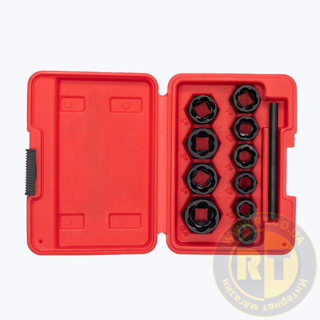 Набор удлиненных экстракторов для поврежденных болтов и гаек SD-8008 необходим для демонтажа болтов и гаек, которые повреждены или имеют стертые грани. Набор включает в себя 10 экстракторов диаметром 9, 10, 11, 12, 13, 14, 15, 16, 17, 19 мм и выколотку для извлечения застрявших крепежей. Все элементы набора изготовлены из хром молибденовой стали, которая гарантирует высокую прочность и долгий срок службы. Удлиненная форма экстракторов позволяет извлекать глубоко посаженные болты и гайки.